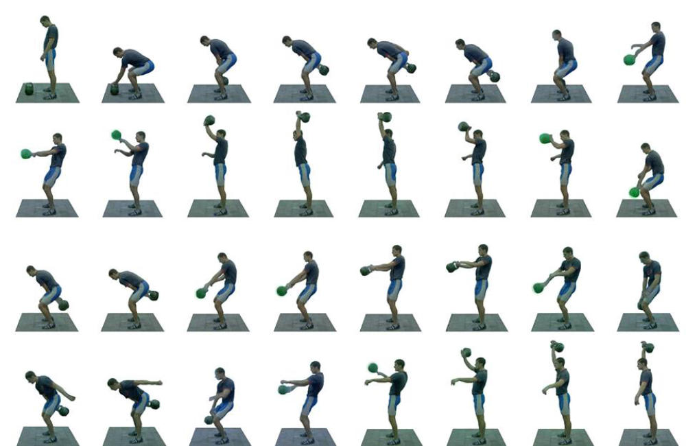 • der Schwung der Kugelhanteln beim verlassen der Ausstoßposition genutzt wird um fließend in die Durchschwungbewegung überzugehen